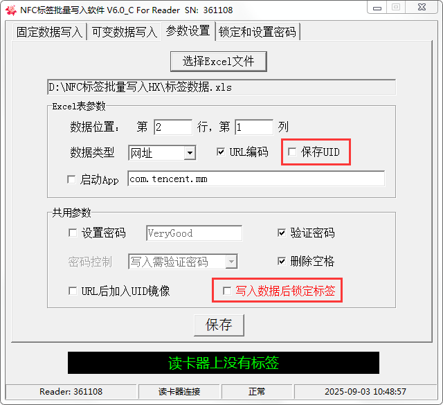 如果勾选了保存UID,读标签时会把标签的UID保存到Excel表。