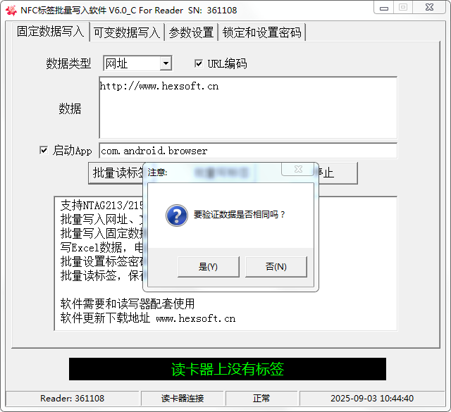 NFC标签批量写入软件C版,版本号:V6.0_C